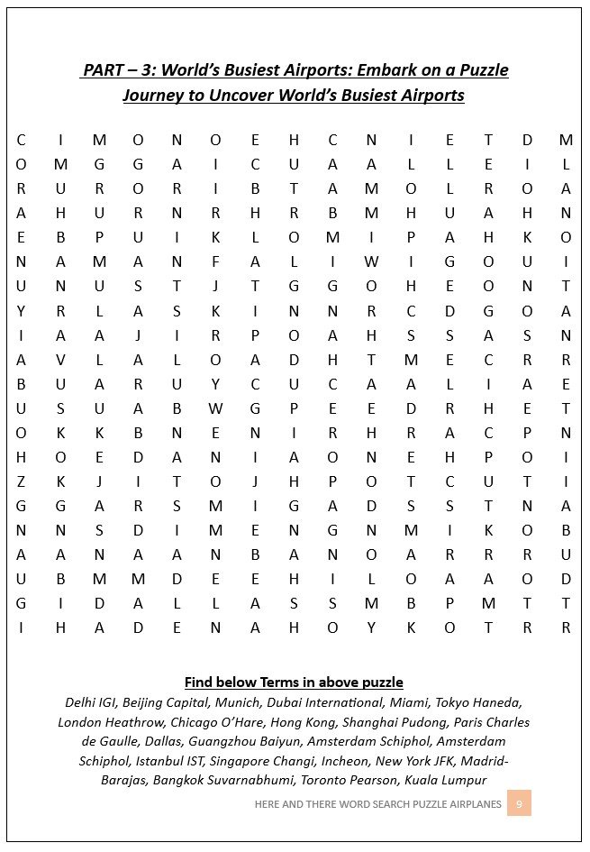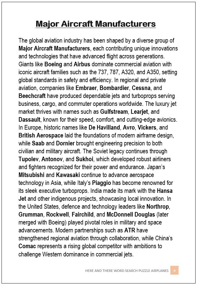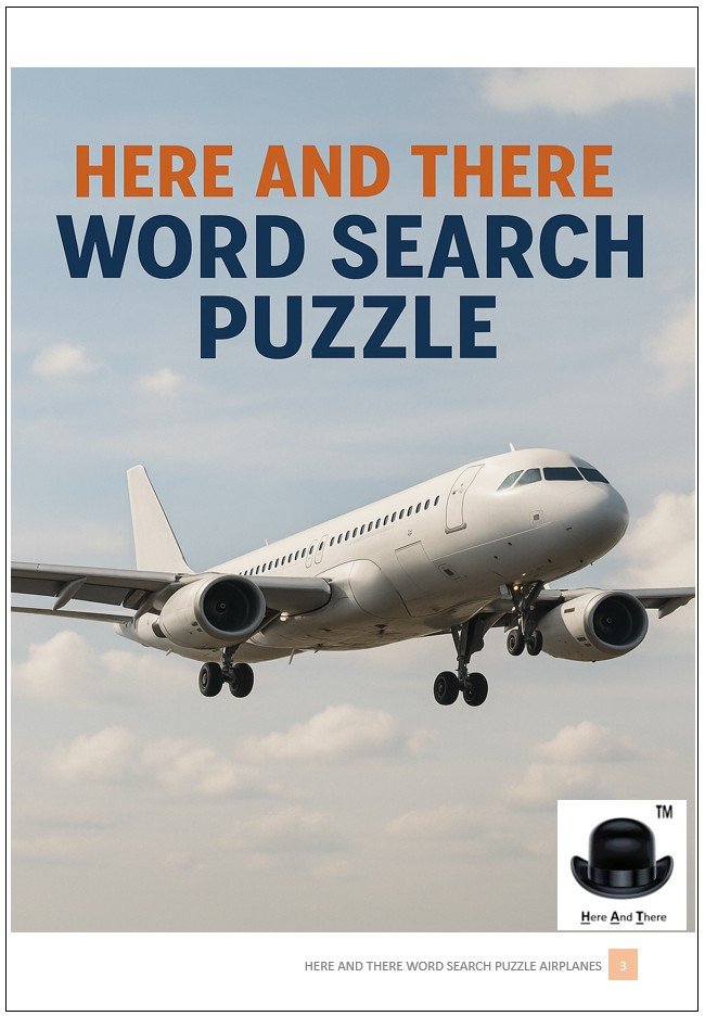 HERE AND THERE’s WORD SEARCH BOOK – AIRPLANES is a professionally designed puzzle book created for aviation enthusiasts, learners, and puzzle lovers. It features 50 carefully curated word search topics, including Major aircraft manufacturers, Parts of an airplane, World’s busiest airports, Historical aircraft, Types of aircraft, Airport vocabulary, Aviation jobs and related aviation themes. Every word search topic and term is thoroughly described, ensuring that readers gain meaningful knowledge along with puzzle-solving enjoyment.