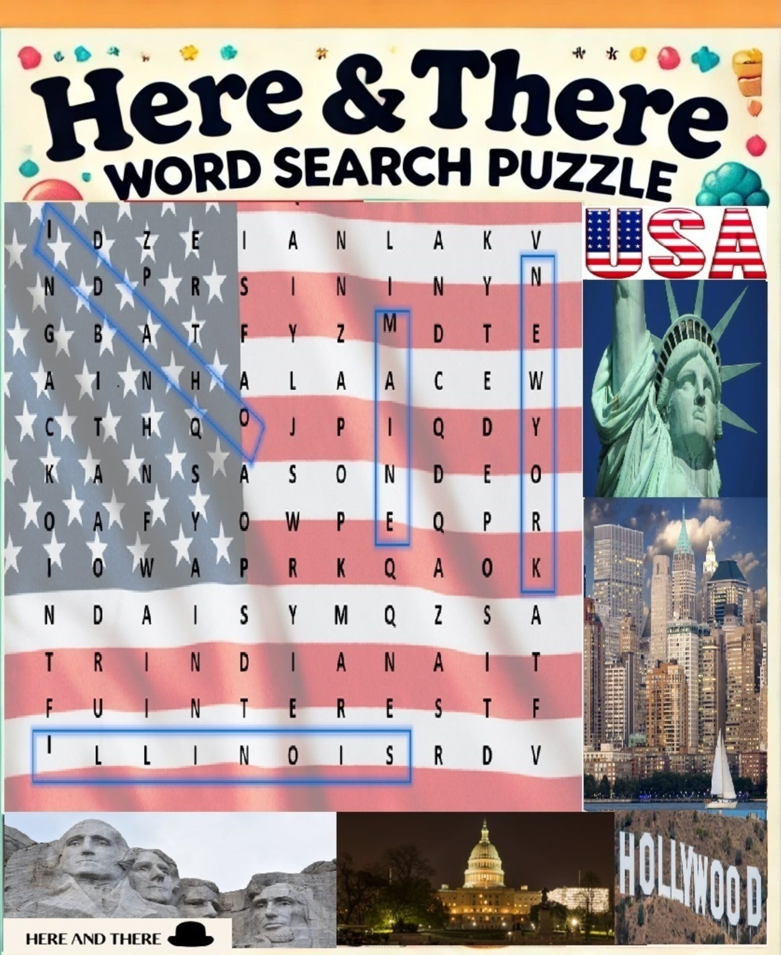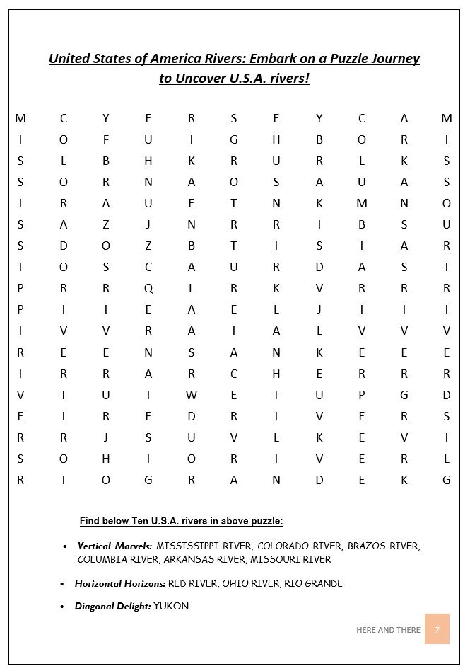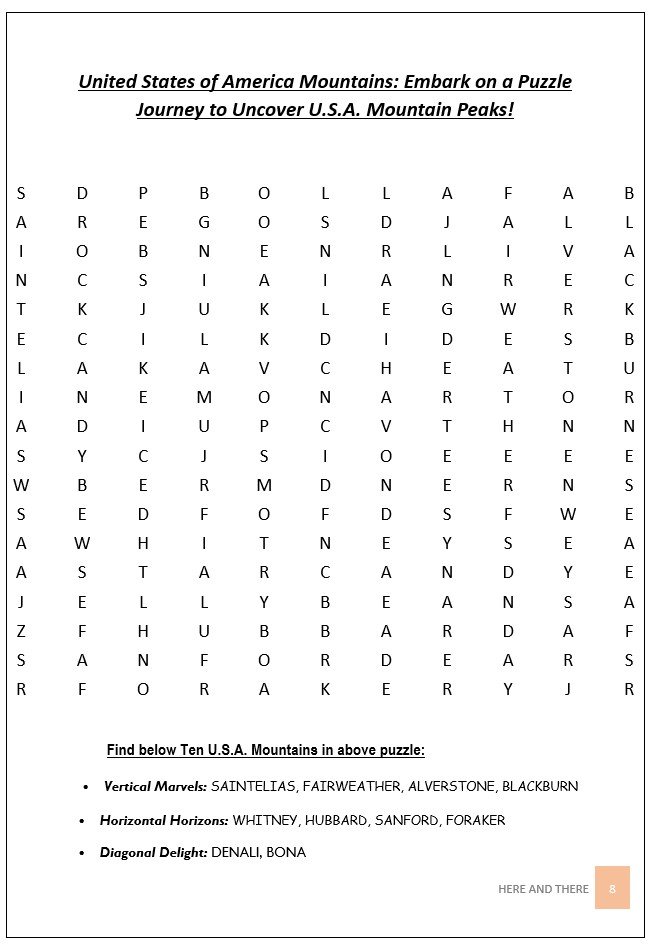 HERE AND THERE’s WORD SEARCH BOOK – U.S.A. is a professionally designed puzzle book that explores the history, geography, culture, and achievements of the United States through engaging word searches. This thoughtfully curated book features 50 carefully selected word search topics, including United States of America scientists, U.S.A. states, major American rivers, U.S.A. mountain peaks, well-known U.S.A. brands, famous monuments, U.S.A. presidents, landmarks, national parks, inventions, and more. Every word search topic and each included term is thoroughly described, enabling readers to learn meaningful facts while enjoying the puzzle-solving experience.